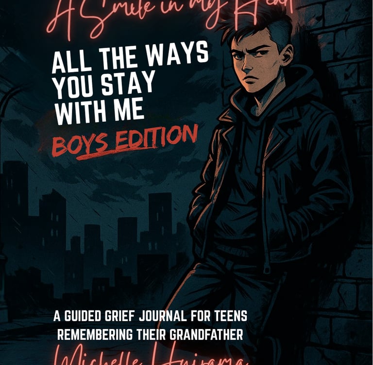 A Smile in My Heart: Remembering Grandad – Boys Edition is a guided grief journal created for teenage boys (ages 14 and up) who are navigating the loss of a grandfather.