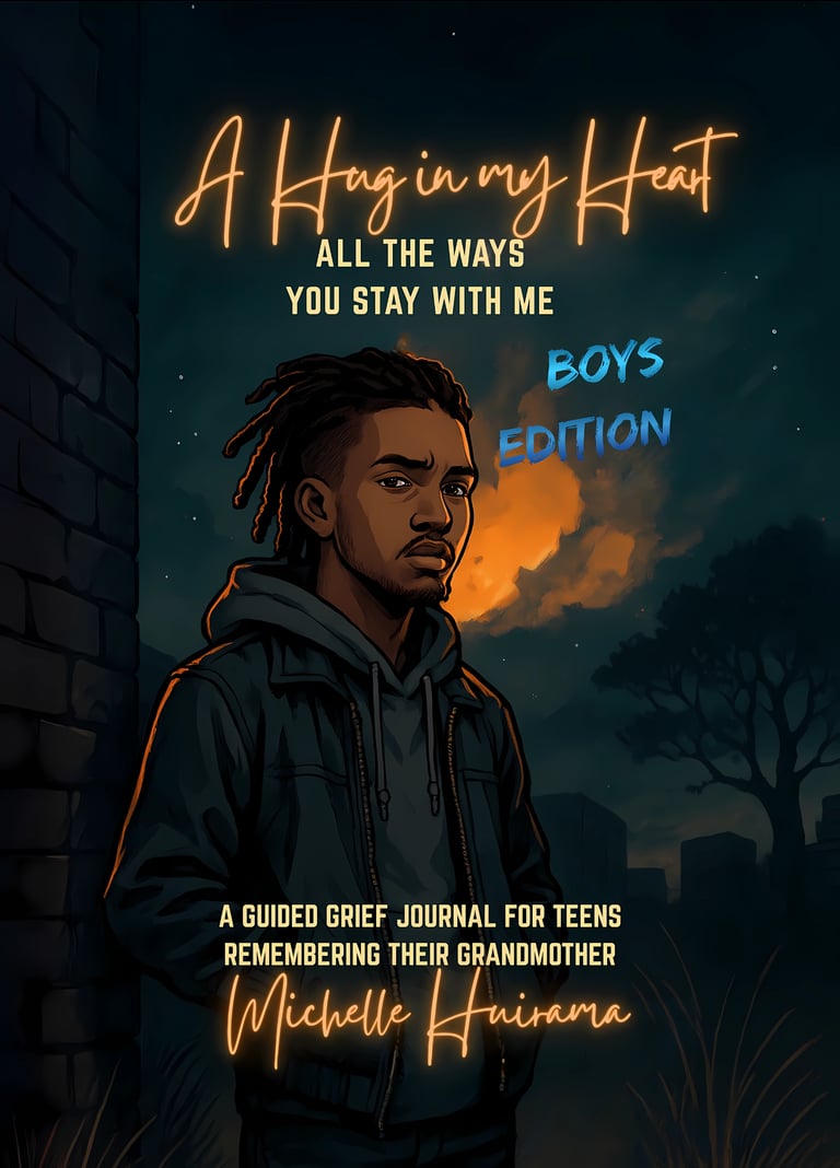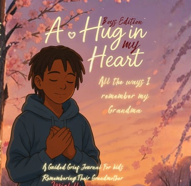 A Hug in My Heart – Boys Edition is a comforting grief journal designed especially for boys navigating this difficult time. Created with sensitivity, strength, and age-appropriate language, this journal gives boys a safe place to express emotions, remember their Grandma, and take small steps toward healing.