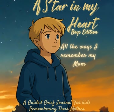 This journal can be used at home, in counseling, at school, or as a meaningful gift after a loss. It empowers boys to express their grief in healthy ways, build resilience, and remember that their mom’s love is still with them — shining like a star inside their heart.